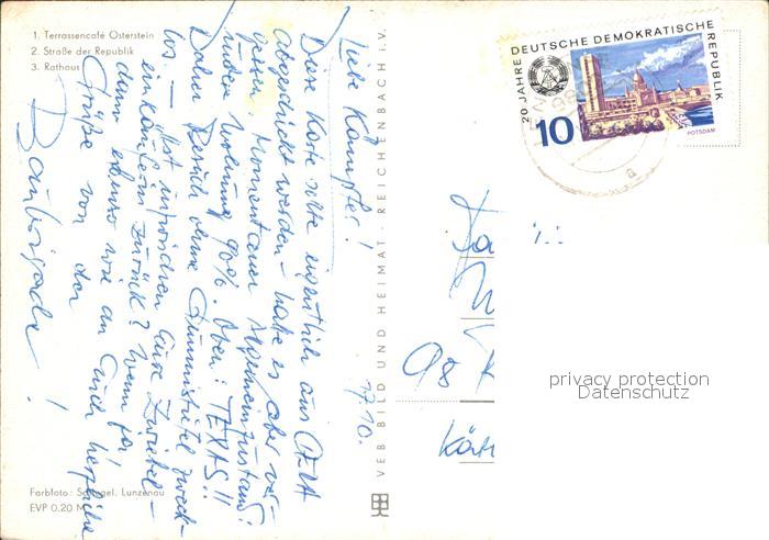 72061788 alte Postkarte Gera Cafe Osterstein Strasse der Republik Rathaus postalisch gelaufen KatCode: 11110016052000