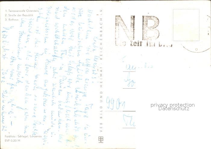 72063121 alte Postkarte Gera Cafe Osterstein Strasse der Republik Rathaus postalisch gelaufen Erhaltung siehe scans KatCode: 11110016052000