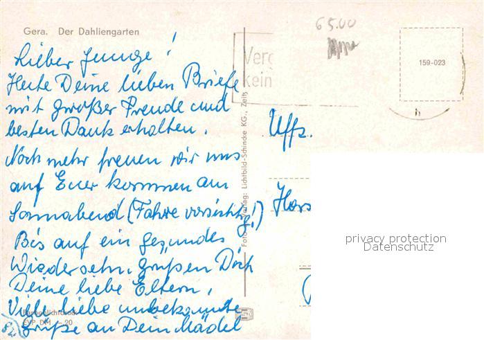 72749724 alte Postkarte Gera Dahliengarten postalisch gelaufen Erhaltung siehe scans [KathaD81] KatCode: 11110016052000