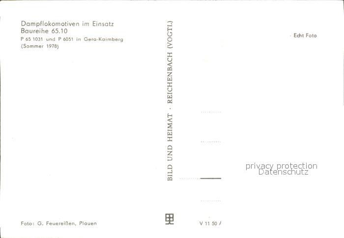 72120319 Gera Dampflokomotive Baureihe 65 10 postalisch nicht gelaufen Erhaltung siehe scans KatCode: 11110016052000