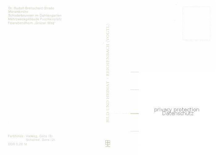 72919601 Gera Dr Rudolf Breitscheid Strasse Marienkirche Schoderbrunnen Dahliengarten Mehrzweckgebaeude Puschkinplatz Feierabendheim Gruener Weg postalisch nicht gelaufen Erhaltung siehe scans [FriedD77] KatCode: 11110016052000