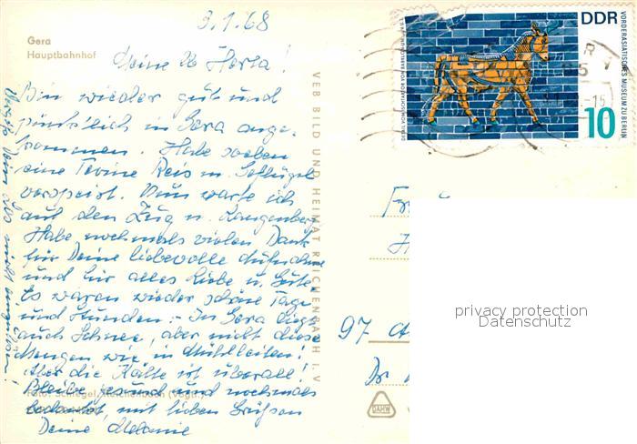 72727427 alte Postkarte Gera Hauptbahnhof postalisch gelaufen Erhaltung siehe scans [FriedD77] KatCode: 11110016052000