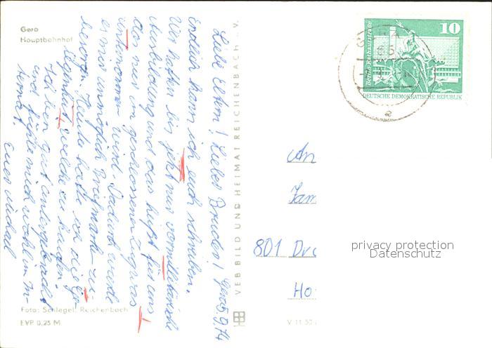 72362352 alte Postkarte Gera Hauptbahnhof postalisch gelaufen Erhaltung siehe scans KatCode: 11110016052000