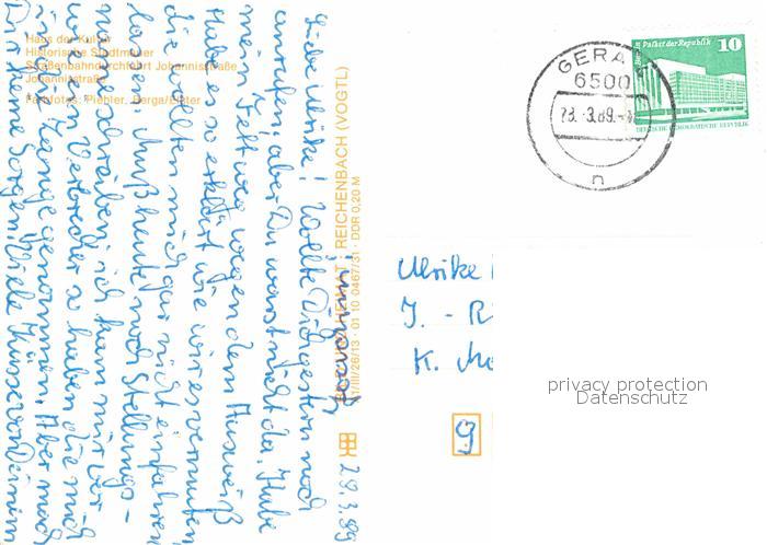 72617370 alte Postkarte Gera Haus der Kultur Stadtmauer Strassenbahndurchfahrt Johannisstrasse postalisch gelaufen Erhaltung siehe scans [WerneD78] KatCode: 11110016052000