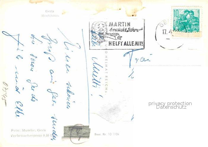 72644719 alte Postkarte Gera Hochhaus postalisch gelaufen Erhaltung siehe scans [AndreD76] KatCode: 11110016052000
