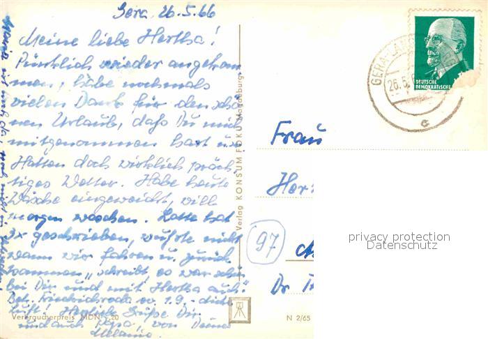72727423 alte Postkarte Gera Hochhaus Rathaus Puschkinplatz Stadtbild Stadion der Freundschaft postalisch gelaufen Erhaltung siehe scans [FriedD77] KatCode: 11110016052000