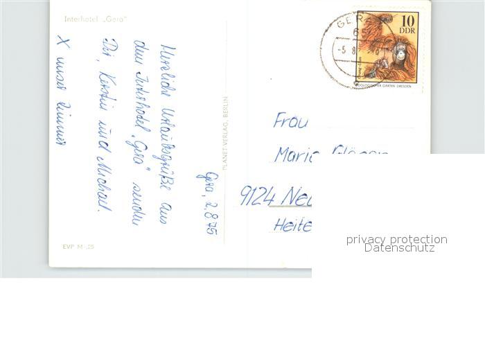 alte Postkarte Gera Interhotel postalisch gelaufen Erhaltung siehe scans