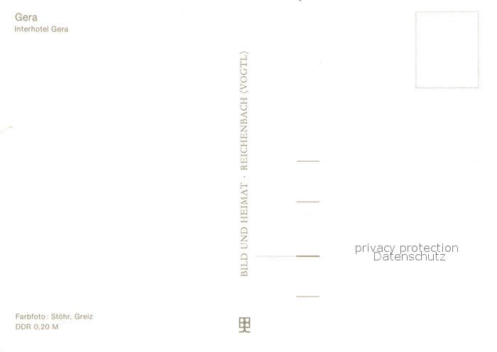 73634343 Gera Interhotel Gera postalisch nicht gelaufen Erhaltung siehe scans [FriedD77] KatCode: 11110016052000