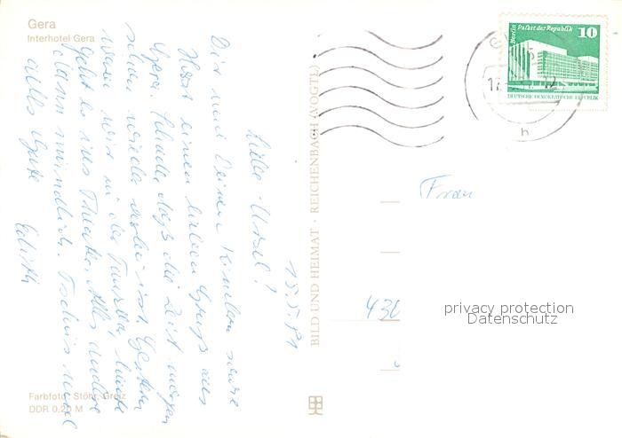 73082934 alte Postkarte Gera Interhotel Gera postalisch gelaufen Erhaltung siehe scans [FriedD77] KatCode: 11110016052000