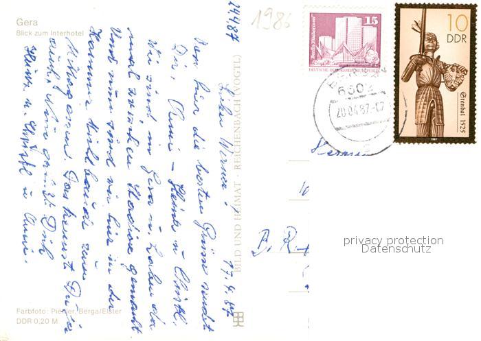 72945849 alte Postkarte Gera Interhotel Gera postalisch gelaufen Erhaltung siehe scans [WerneD78] KatCode: 11110016052000