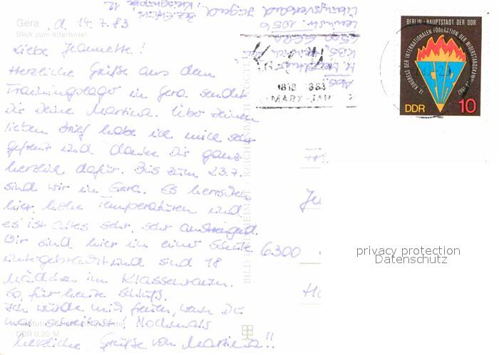 72629196 alte Postkarte Gera Interhotel Gera postalisch gelaufen Erhaltung siehe scans [WerneD78] KatCode: 11110016052000