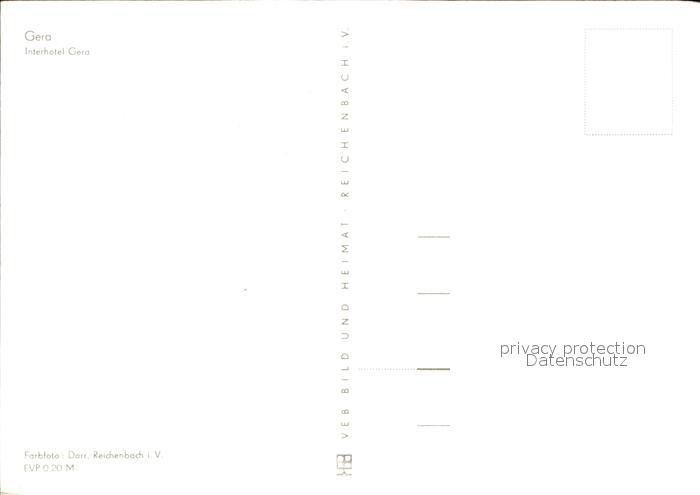 72513404 Gera Interhotel Gera postalisch nicht gelaufen Erhaltung siehe scans KatCode: 11110016052000