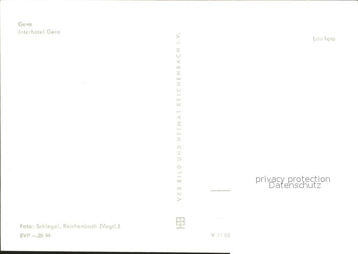 72118598 Gera Interhotel Gera postalisch nicht gelaufen Erhaltung siehe scans KatCode: 11110016052000