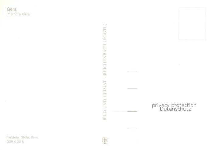 73860156 Gera Interhotel Gera postalisch nicht gelaufen Erhaltung siehe scans [WerneD78] KatCode: 11110016052000