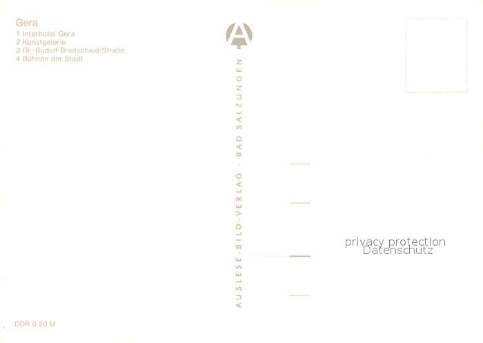 73042437 Gera Interhotel Gera Kunstgalerie Dr Rudolf Breitscheid Strasse Buehnen der Stadt postalisch nicht gelaufen Erhaltung siehe scans [FriedD77] KatCode: 11110016052000