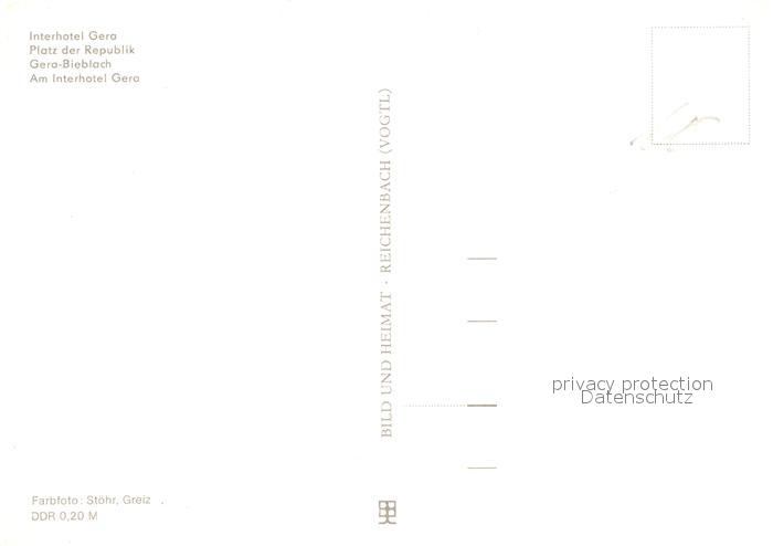 72997176 Gera Interhotel Gera Platz der Republik Bieblach postalisch nicht gelaufen Erhaltung siehe scans [WerneD78] KatCode: 11110016052000