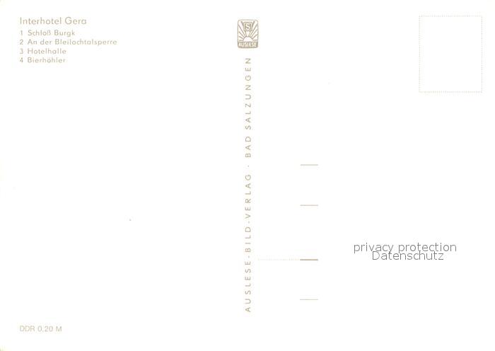 73741765 Gera Interhotel Gera Schloss Burgk An der Bleilochtalsperre Hotelhalle Bierhoehler postalisch nicht gelaufen Erhaltung siehe scans [WerneD78] KatCode: 11110016052000