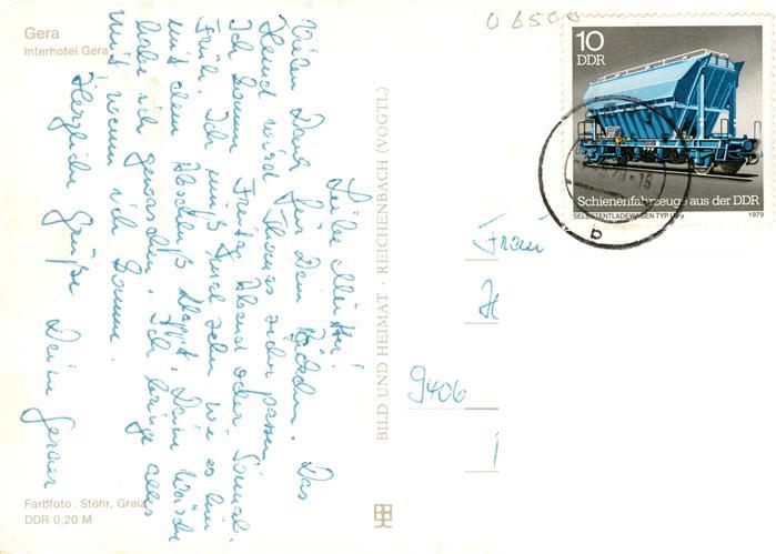 73900613 alte Postkarte Gera Interhotel Gera postalisch gelaufen Erhaltung siehe scans [WerneD78] KatCode: 11110016052000