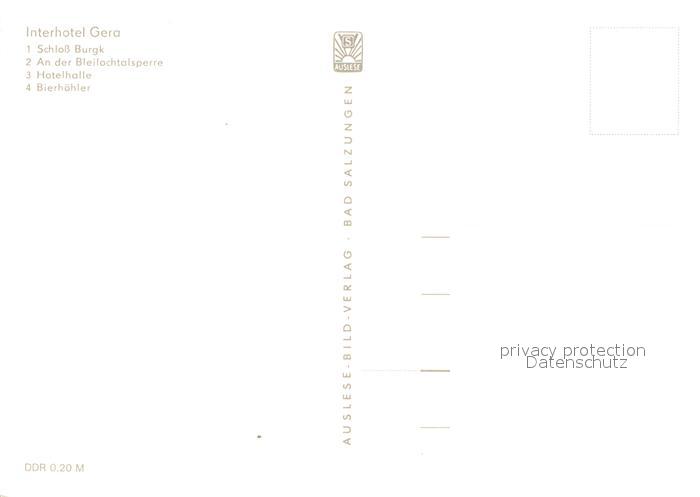 73721566 Gera Interhotel Schloss Burgk Hotelhalle Bierhoehler Bleilochtalsperre postalisch nicht gelaufen Erhaltung siehe scans [FriedD77] KatCode: 11110016052000