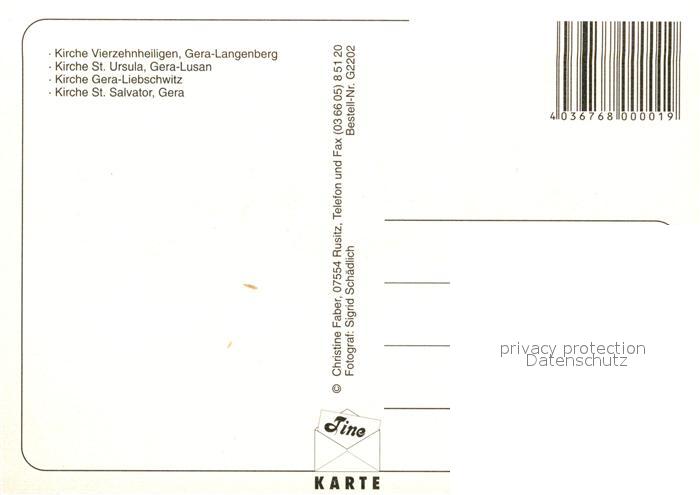 73225798 Gera Kirchen Vierzehnheiligen Langenberg St Ursula Lusan Liebschwitz St Salvator postalisch nicht gelaufen Erhaltung siehe scans [WerneD78] KatCode: 11110016052000