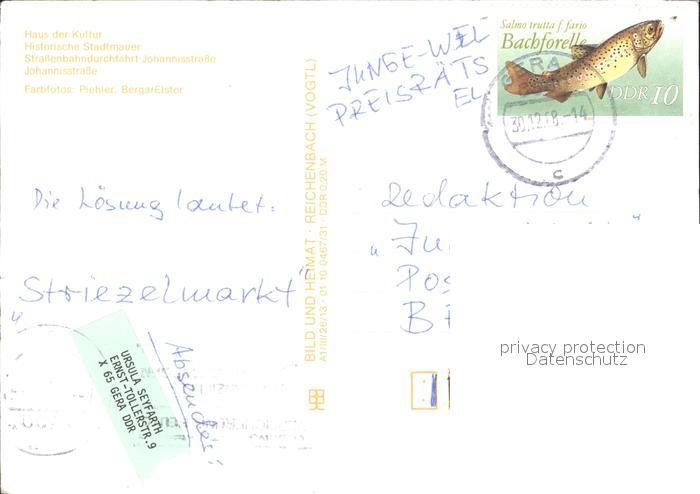 72138198 alte Postkarte Gera Kulturhaus Histor Stadtmauer Strassenbahndurchfahrt Johannisstrasse postalisch gelaufen Erhaltung siehe scans KatCode: 11110016052000