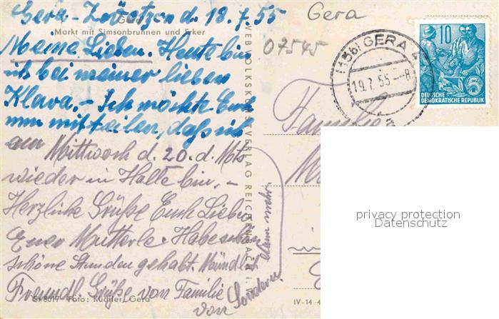 72642872 alte Postkarte Gera Markt Simonsbrunnen postalisch gelaufen Erhaltung siehe scans [AndreD76] KatCode: 11110016052000