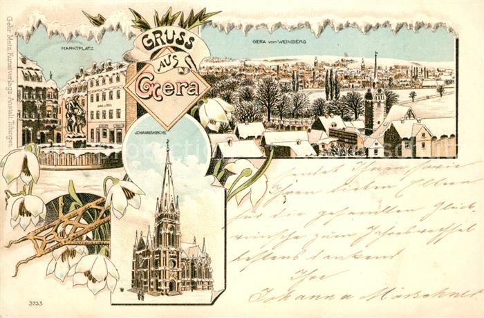 33139131 alte Postkarte Gera Marktplatz Panorama Winterpanorama Johanniskirche postalisch gelaufen Erhaltung siehe scans [KathaD81] KatCode: 11110016052000