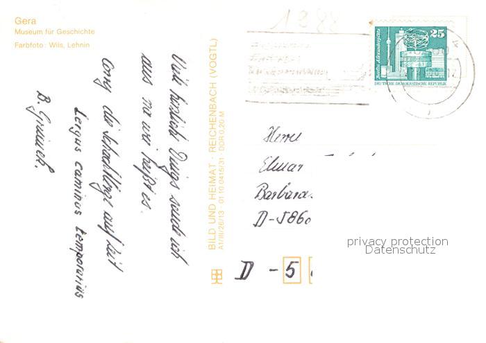 72945851 alte Postkarte Gera Museum fuer Geschichte postalisch gelaufen Erhaltung siehe scans [WerneD78] KatCode: 11110016052000