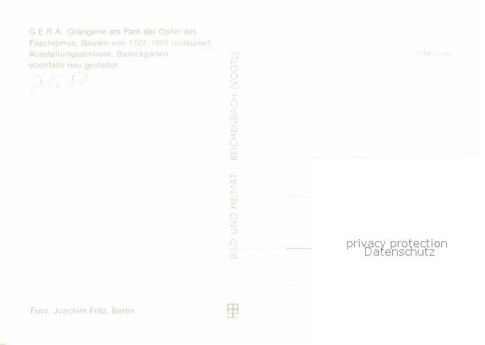 72637073 Gera Orangerie am Park der Opfer des Faschismus postalisch nicht gelaufen Erhaltung siehe scans [AndreD76] KatCode: 11110016052000