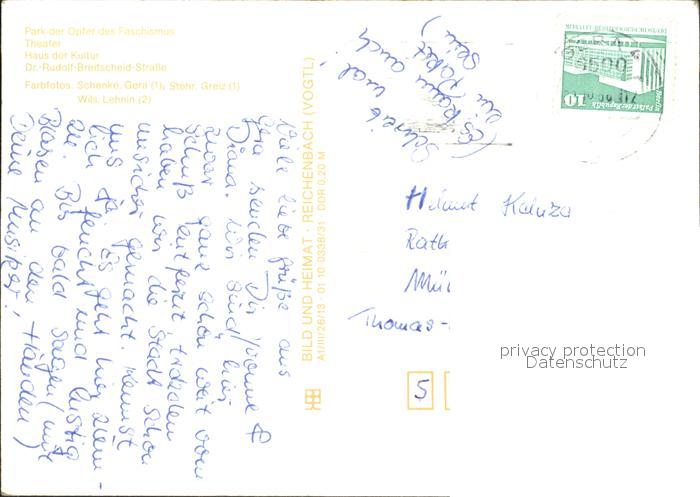 72325082 alte Postkarte Gera Park Theater Haus der Kultur Rudolf Breitscheid Str postalisch gelaufen Erhaltung siehe scans KatCode: 11110016052000