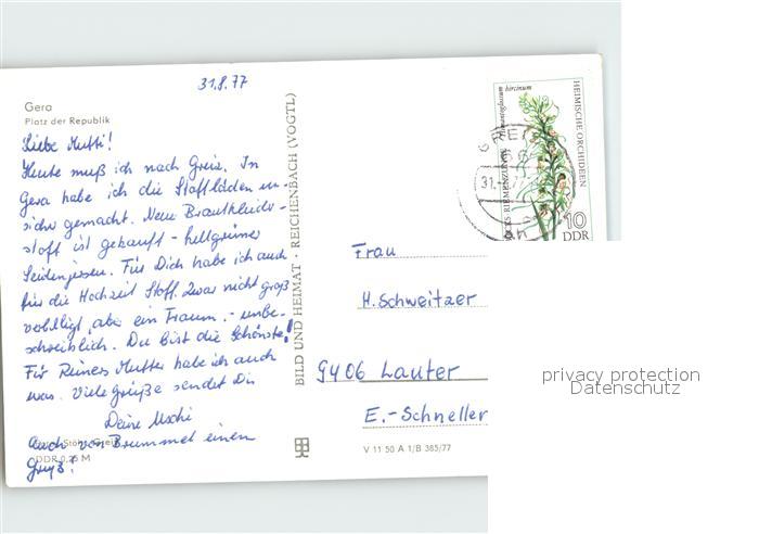72080988 alte Postkarte Gera Platz der Republik postalisch gelaufen Erhaltung siehe scans KatCode: 11110016052000
