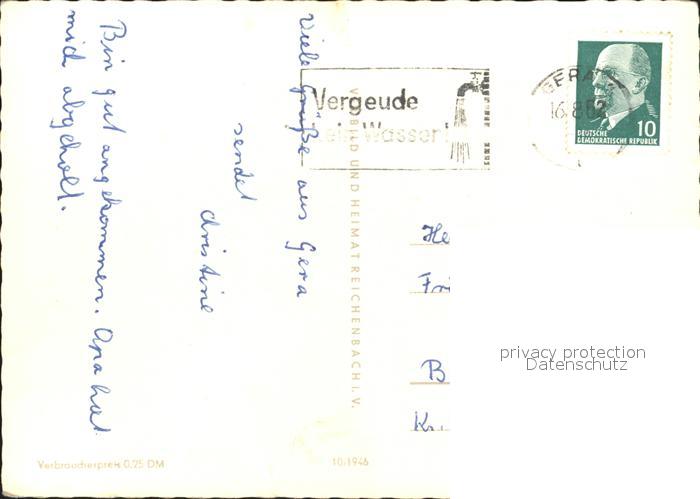 72365588 alte Postkarte Gera Puschkinplatz Museum Markt Simsonbrunnen Theater Stadion postalisch gelaufen Erhaltung siehe scans KatCode: 11110016052000