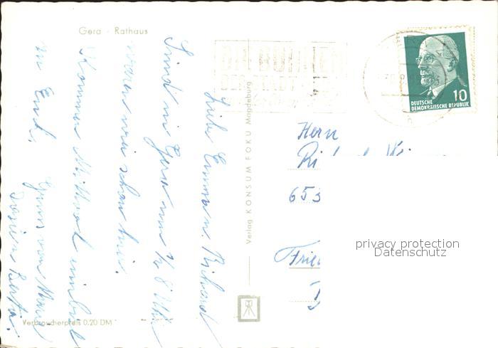 72115789 alte Postkarte Gera Rathaus postalisch gelaufen Erhaltung siehe scans KatCode: 11110016052000