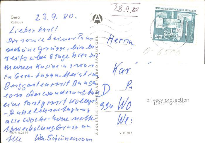 72115866 alte Postkarte Gera Rathaus postalisch gelaufen Erhaltung siehe scans KatCode: 11110016052000