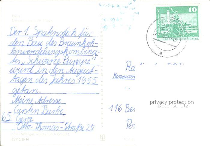 72046469 alte Postkarte Gera Simsonbrunnen am Markt postalisch gelaufen Erhaltung siehe scans KatCode: 11110016052000
