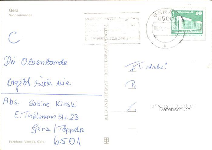 72537524 alte Postkarte Gera Sonnenbrunnen postalisch gelaufen Erhaltung siehe scans [WerneD78 kt117box] KatCode: 11110016052000