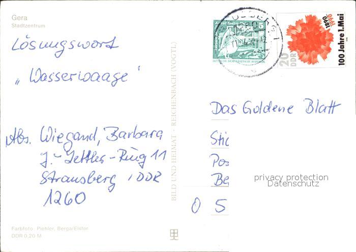 alte Postkarte Gera Stadtzentrum postalisch gelaufen Erhaltung siehe scans
