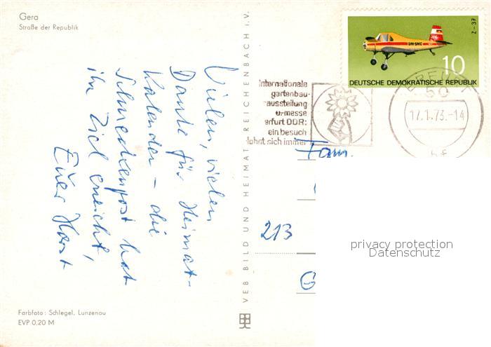 73097944 alte Postkarte Gera Strasse der Republik postalisch gelaufen Erhaltung siehe scans [WerneD78] KatCode: 11110016052000