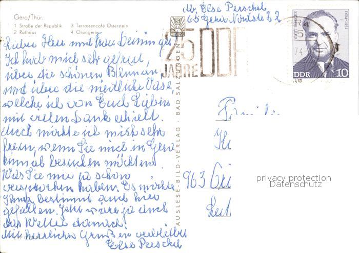 72457331 alte Postkarte Gera Strasse der Republik Rathaus Terrassencafe Osterstein Orangerie postalisch gelaufen Erhaltung siehe scans KatCode: 11110016052000