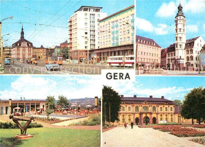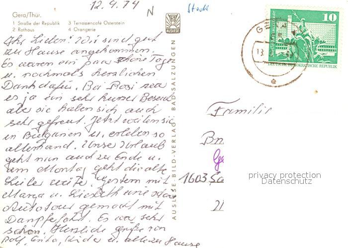 73157223 alte Postkarte Gera Strasse der Republik Rathaus Terrassencafe Osterstein Orangerie postalisch gelaufen Erhaltung siehe scans [FriedD77] KatCode: 11110016052000