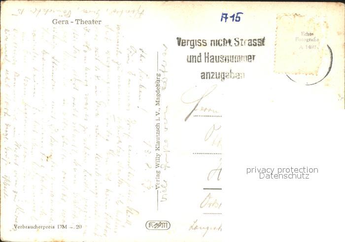 71924794 alte Postkarte Gera Theater postalisch gelaufen Erhaltung siehe scans KatCode: 11110016052000
