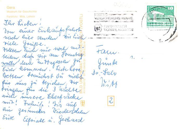 73938601 alte Postkarte Gera Thueringen Museum fuer Geschichte postalisch gelaufen Erhaltung siehe scans [WerneD78] KatCode: 11110016052000