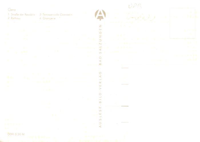 73938595 Gera Thueringen Strasse der Republik Terrassencafe Osterstein Rathaus Orangerie postalisch nicht gelaufen Erhaltung siehe scans [WerneD78] KatCode: 11110016052000