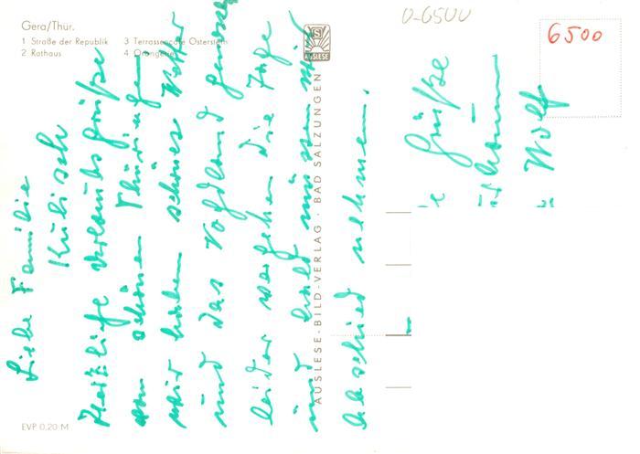 73938600 Gera Thueringen Strasse der Republik Terrassencafe Osterstein Rathaus Orangerie postalisch nicht gelaufen Erhaltung siehe scans [WerneD78] KatCode: 11110016052000