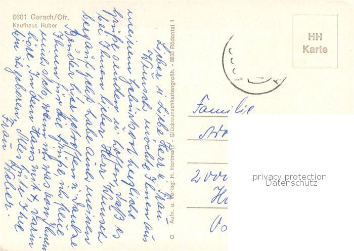 73672374 alte Postkarte Gerach Oberfranken Kinderspielplatz Panorama Kirche Kaufhaus Huber postalisch gelaufen Erhaltung siehe scans [WerneD78] KatCode: 11110009471133