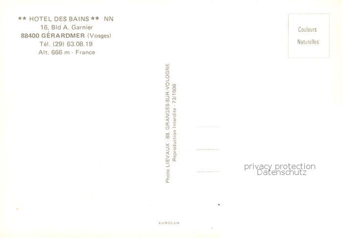 13843290 Gerardmer 88 Vosges Hotel des Bains postalisch nicht gelaufen Erhaltung siehe scans [FriedD77] Frie Katcode 11170088388196