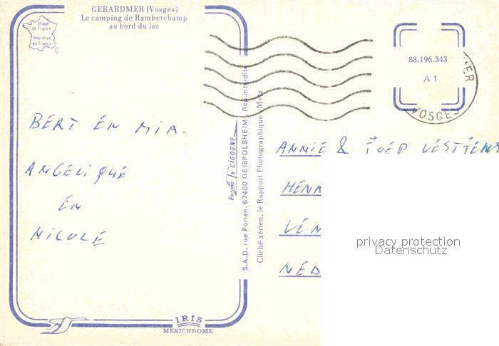 12789553 carte postale Gerardmer Vosges Camping de Ramberchamp au bord du lac Fliegeraufnahme postalisch gelaufen Erhaltung siehe scans [WerneD78] KatCode: 11170088388196