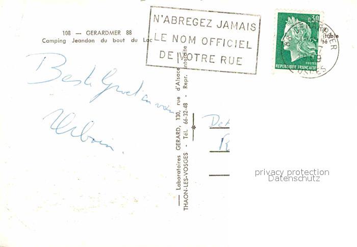 12687301 carte postale Gerardmer Vosges Camping Jeandon du bout du Lac postalisch gelaufen Erhaltung siehe scans [FriedD77] KatCode: 11170088388196