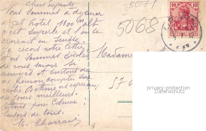 13365668 carte postale Gerardmer Vosges Hotel Altenberg Col de la Schlucht postalisch gelaufen Erhaltung siehe scans [FriedD77] KatCode: 11170088388196