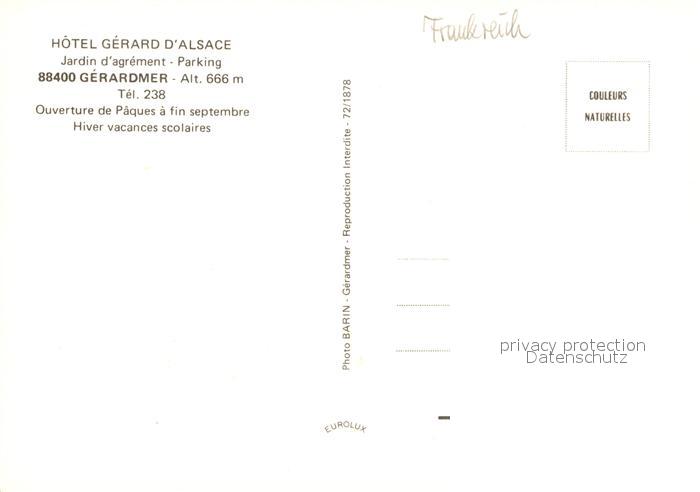 13269229 Gerardmer Vosges Hotel Gerard D Alsace postalisch nicht gelaufen Erhaltung siehe scans [KathaD81] KatCode: 11170088388196